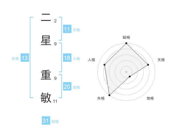 二星 重敏さんの総格は31画の5点!