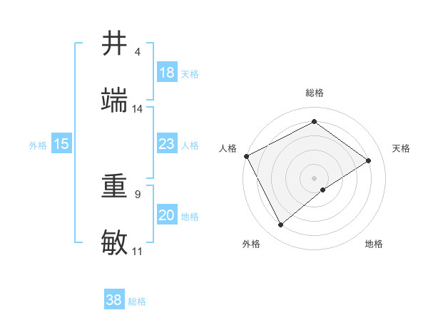 井端 重敏さんの総格は38画の4点!