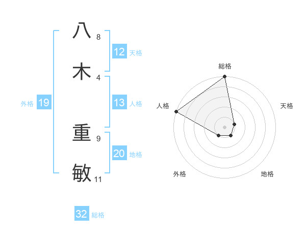 八木 重敏さんの総格は32画の5点!