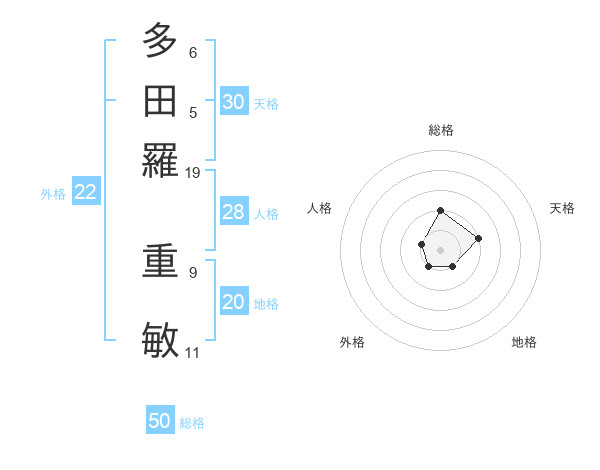 多田羅 重敏さんを姓名の画数から五運を鑑定