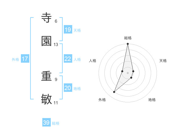 寺園 重敏さんの総格は39画の5点!