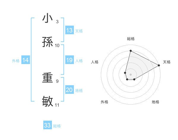小孫 重敏さんを姓名の画数から五運を鑑定