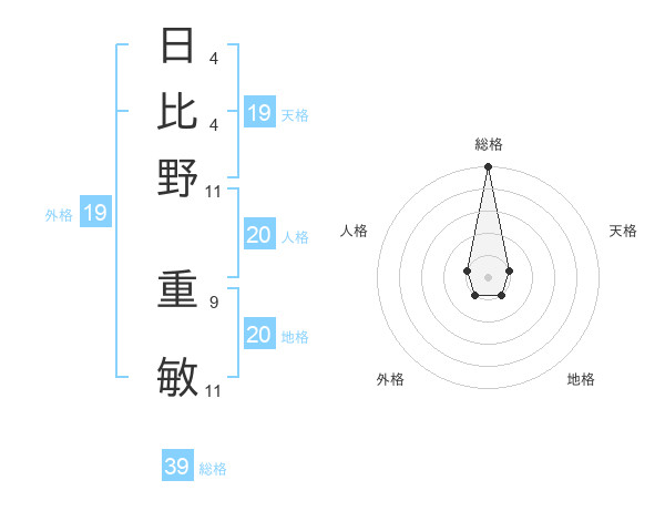 日比野 重敏さんを姓名の画数から五運を鑑定