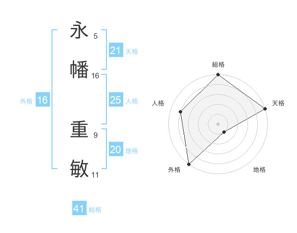 永幡 重敏さんを姓名の画数から五運を鑑定