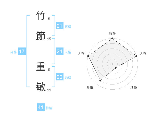 竹節 重敏さんの総格は41画の5点!