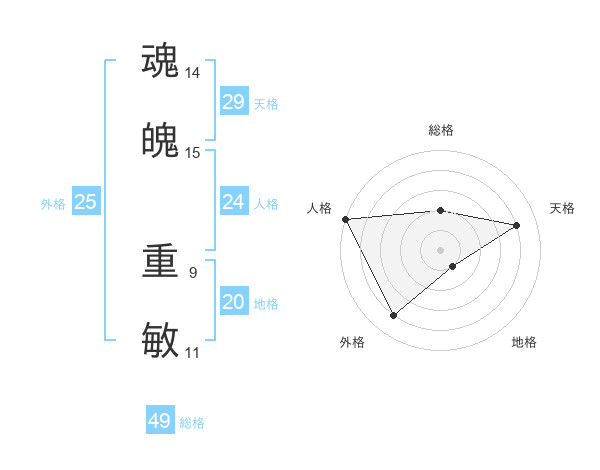 魂魄 重敏さんの総格は49画の2点!