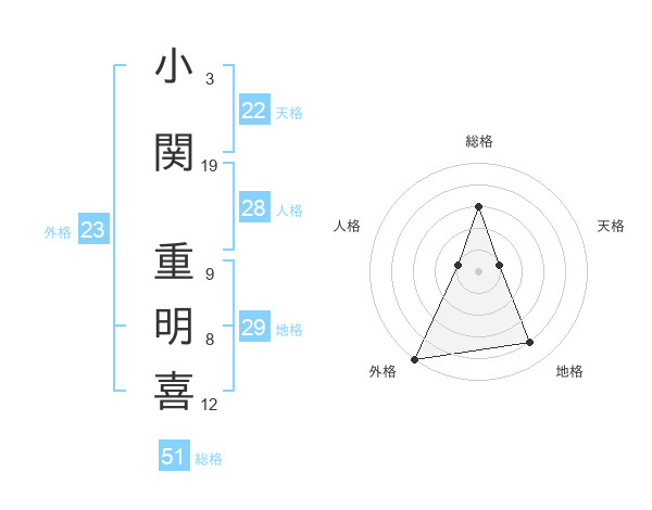 小関 重明喜さんの総格は51画の3点