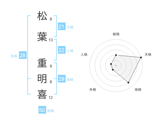 松葉 重明喜さんの総格は50画の2点!