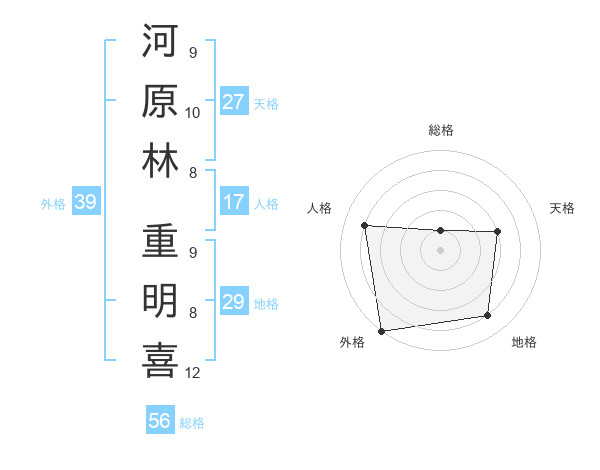 河原林 重明喜さんを姓名の画数から五運を鑑定