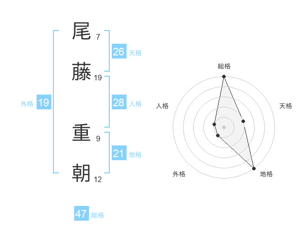 尾藤 重朝さんを姓名の画数から五運を鑑定