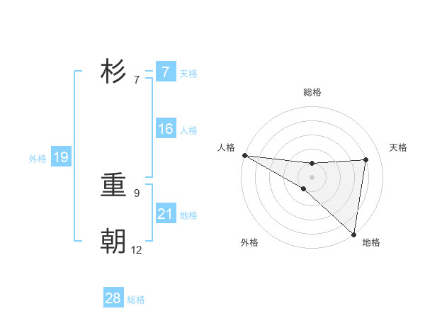 杉 重朝さんの総格は28画の1点!