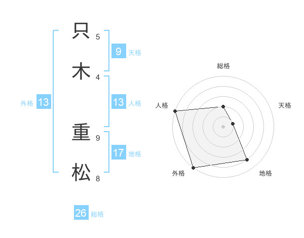 只木 重松さんの地格は17画の4点!