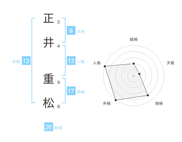 正井 重松さんの外格は13画の5点!