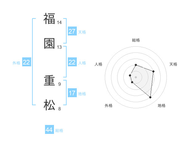 福園 重松さんの総格は44画の2点!