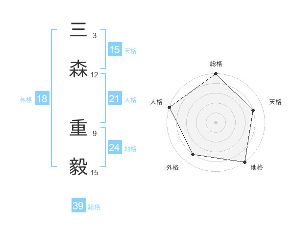 三森 重毅さんの総格は39画の5点!