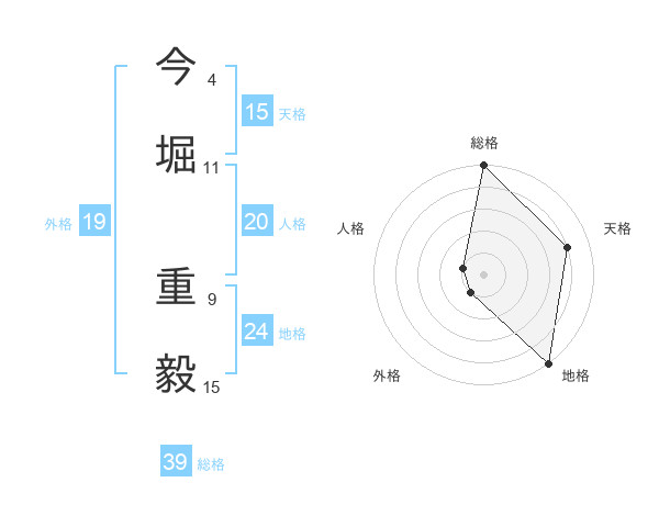 今堀 重毅さんを姓名の画数から五運を鑑定