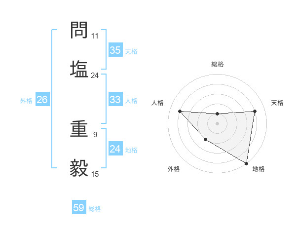 問塩 重毅さんの総格は59画の1点!