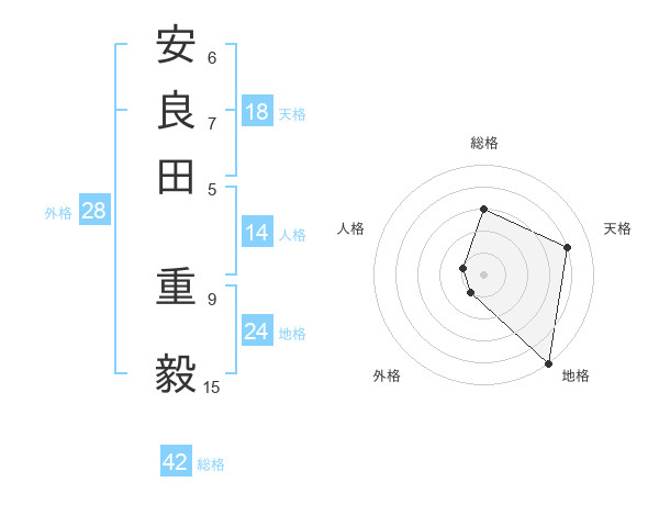 安良田 重毅さんの総格は42画の3点!