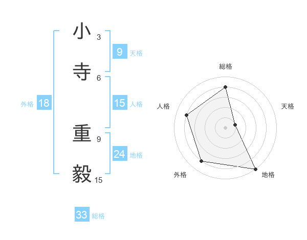 小寺 重毅さんを姓名の画数から五運を鑑定