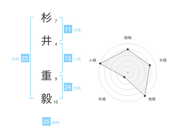杉井 重毅さんの総格は35画の4点!