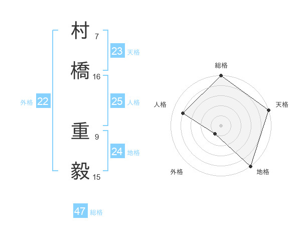 村橋 重毅さんを姓名の画数から五運を鑑定