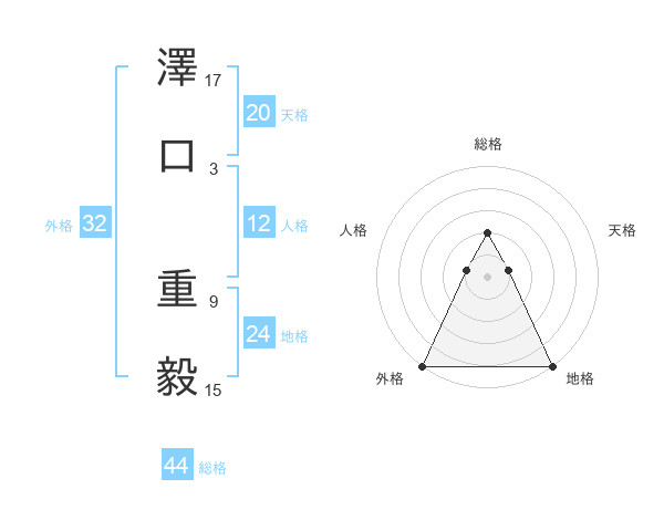 澤口 重毅さんを姓名の画数から五運を鑑定