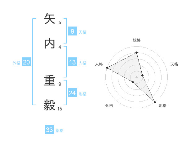 矢内 重毅さんの総格は33画の4点!
