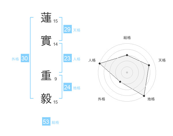 蓮實 重毅さんの天格は29画の4点!