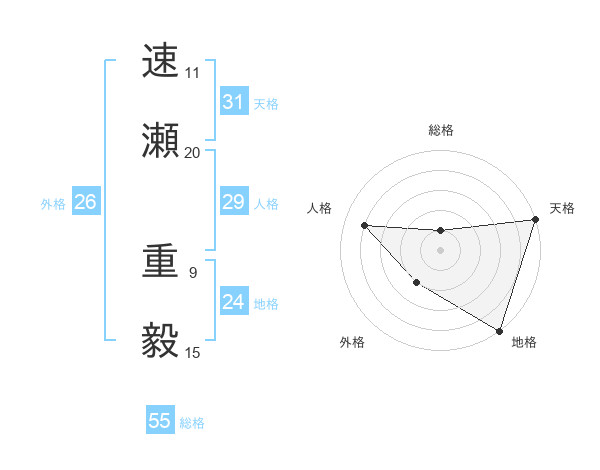 速瀬 重毅さんの天格は31画の5点!