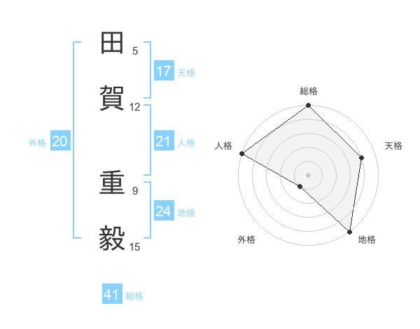 田賀 重毅さんを姓名の画数から五運を鑑定