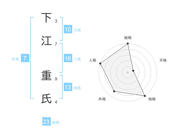 下江 重氏さんの総格は23画の5点!