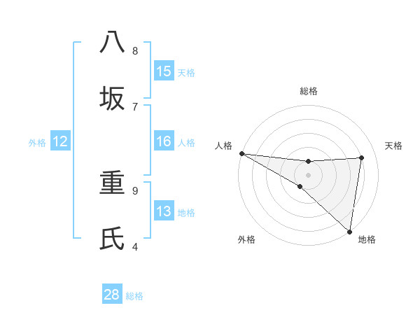 八坂 重氏さんを姓名の画数から五運を鑑定