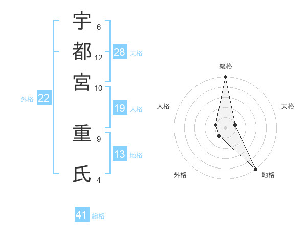 宇都宮 重氏さんを姓名の画数から五運を鑑定