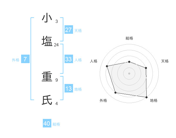 小塩 重氏さんの総格は40画の2点!