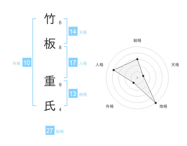 竹板 重氏さんの総格は27画の3点!