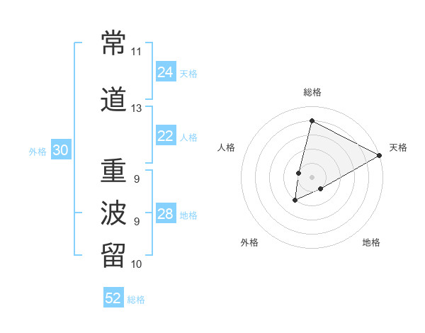 常道 重波留さんの天格は24画の5点!