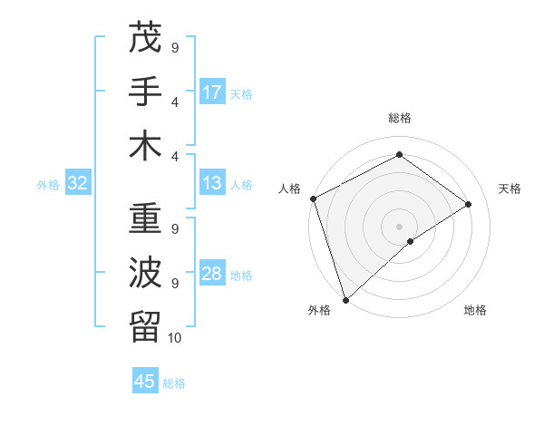 茂手木 重波留さんを姓名の画数から五運を鑑定