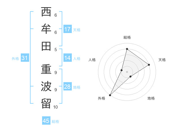 西牟田 重波留さんを姓名の画数から五運を鑑定