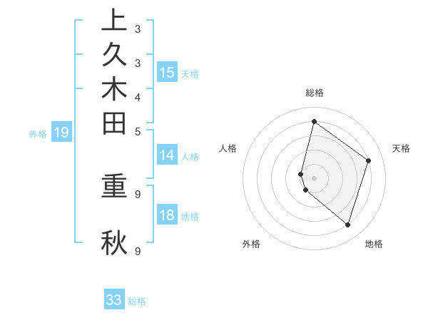 上久木田 重秋さんを姓名の画数から五運を鑑定