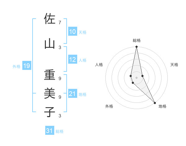 佐山 重美子さんを姓名の画数から五運を鑑定