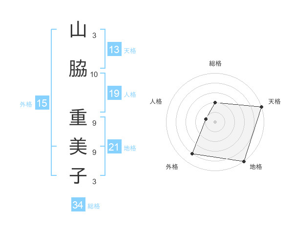 山脇 重美子さんの総格は34画の2点!