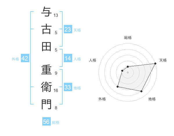 与古田 重衛門さんの天格は23画の5点