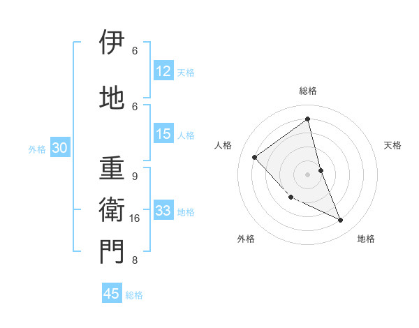 伊地 重衛門さんの総格は45画の4点!