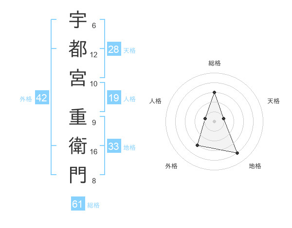 宇都宮 重衛門さんの総格は61画の3点!