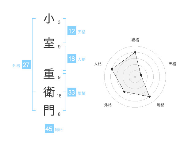 小室 重衛門さんを姓名の画数から五運を鑑定
