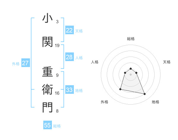 小関 重衛門さんを姓名の画数から五運を鑑定