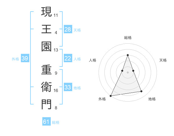 現王園 重衛門さんを姓名の画数から五運を鑑定