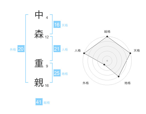 中森 重親さんの総格は41画の5点!
