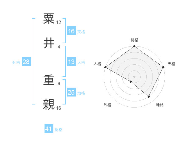 粟井 重親さんの天格は16画の5点!