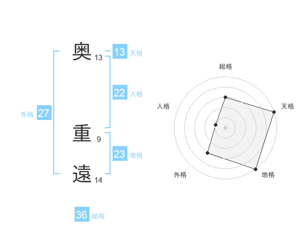 奥 重遠さんの総格は36画の3点!